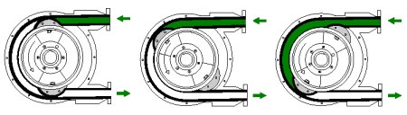 CHECK VALVE ACTION - Many traditional pump types require a check valve or other mechanism to be fitted to ensure that where back pressure exists (pumping against a vertical head for example) backflow of fluid through the pump does not occur. The occlusion (compression) of the peristaltic pump tubing by multiple rollers within the pump head makes for an effective mechanism to resist back flow and in most backflow-critical applications an additional check valve is not normally required.